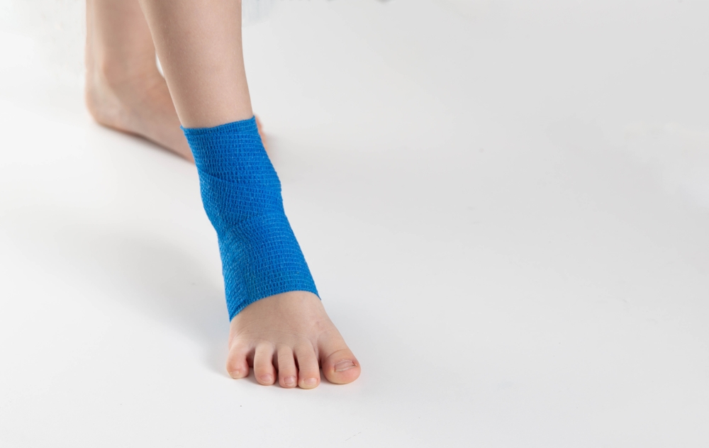 弾性包帯やテーピングで患部を適度に圧迫し、腫れや内出血が広がるのを防ぎます。