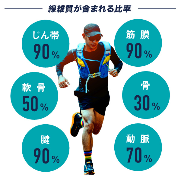 アスリートの生命線は「線維質」です。線維質は「線維状たんぱく質」または「線維プロテイン」ともいい、靭帯や腱、筋膜の主要成分です。